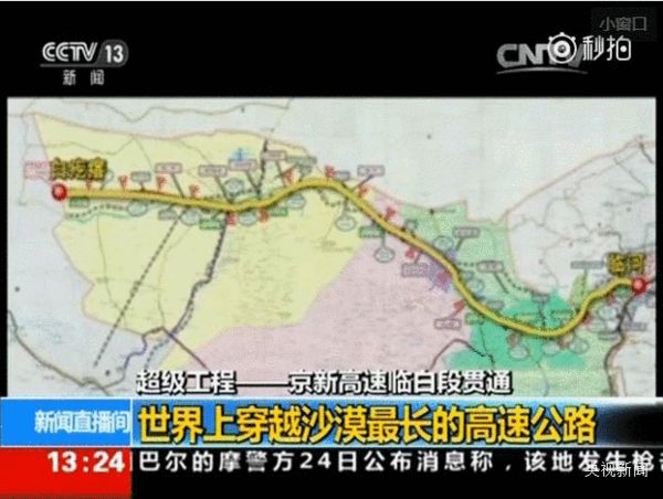 正在建設的北京至烏魯木齊高速公路是我國高速公路網規劃的第六條放射線,全長2582公里,其中的主線工程——全長930公里的臨白段穿越沙漠,是世界穿越沙漠最長的高速公路。25日,京新高速臨白段貫通,為明年京新高速全線通車奠定基礎。隨著最后一段瀝青上面層的鋪設成功,京新高速臨白段主線全線貫通。臨白段全長930公里,始于內蒙古臨河市,經青山、額濟納旗,止于內蒙古和甘肅交界的白疙瘩,橫穿內蒙古西部巴彥淖爾市河阿拉善盟境,是亞洲最大的單體公路交通工程,總投資370億元,采用雙向四車道高速公路標準,設計行車速度為每小時100公里以上。全線穿越中國四大沙漠之一的巴丹吉林沙漠和戈壁灘,多次經過無人區,施工環境異常惡劣。為了確保工程按期完工,京新高速公路臨白段分為多個標段,由中國交建、中國中鐵、中國建筑三家央企數萬建設者陸續完成。