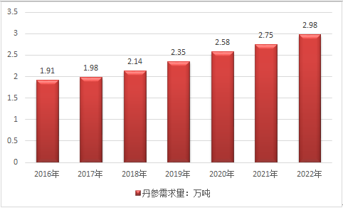 2016-2022年我國丹參需求量預(yù)測