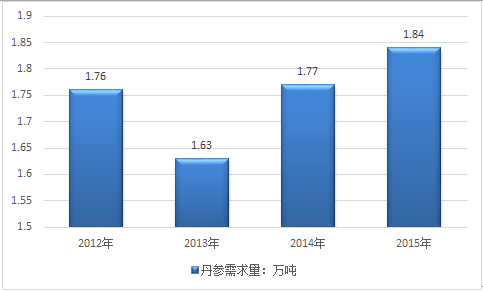 2012-2015年我國丹需求量走勢圖