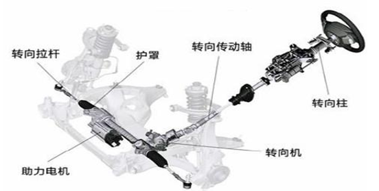 電動助力轉(zhuǎn)向系統(tǒng)在傳統(tǒng)機械轉(zhuǎn)向系統(tǒng)的基礎(chǔ)上,增加了傳感器裝置、電子控 制裝置和轉(zhuǎn)向助力機構(gòu)等,通過控制電動機產(chǎn)生助力進而實現(xiàn)轉(zhuǎn)向,徹底擺脫了油 液加壓助力方式。其主要零部件包括傳感器、助力電機、電控單元(ECU)、車載 電源系統(tǒng)等。