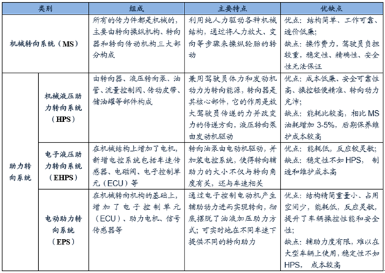 汽車轉(zhuǎn)向系統(tǒng)在各車型中的適用情況