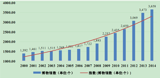 伴隨著財政投入的增長,我國博物館數量增長迅速,根據《中國文化文物統計年鑒(2015)》,全國博物館數量從 2000 年的 1,392 家發展到 2014 年的 3,658家,年均復合增長率達 7.14%。由此可見,未來中國博物館綜合布展市場也會同步保持增長。