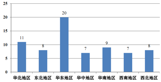 2014 年國家文化產業示范基地按地區分布情況(單位:家)