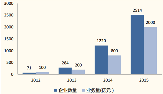 2012-2015 年中國(guó)商業(yè)保理企業(yè)發(fā)展情況