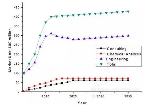 在政策刺激的初期,資本的時代迅速來臨。中國環境修復的年產值從低于100億元逐步發展到300-500億元。是中國環境修復產業變革最劇烈的5年,不僅在場地、農田、礦區等領域的比例會逐步調整,在檢測、咨詢和工程領域的市場份額也會大量變化。其中,環境修復工程的份額會逐漸下降到70%以下,環境咨詢的產值比例會逐步穩定增高,而環境修復領域檢測的市場份額會急劇增長。
