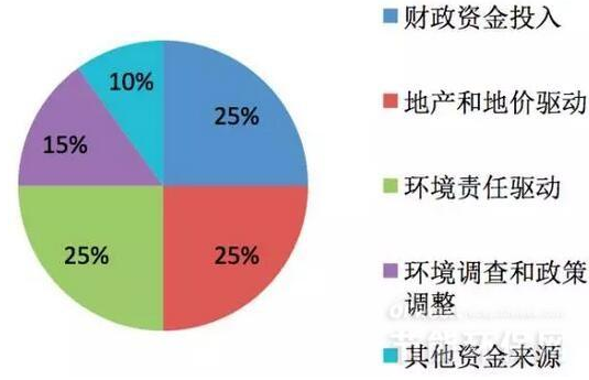 包括中國環保部重金屬、地下水、土壤污染防治的專項資金投入;國家和地方土壤、地下水環境調查資金,污染工業場地修復示范工程,污染農田治理修復示范工程,京津冀重點區域環境治理大工程等,以及發改委、水利部、農業部、國土資源部在農田、河道、礦區的環境治理修復工程投資等。