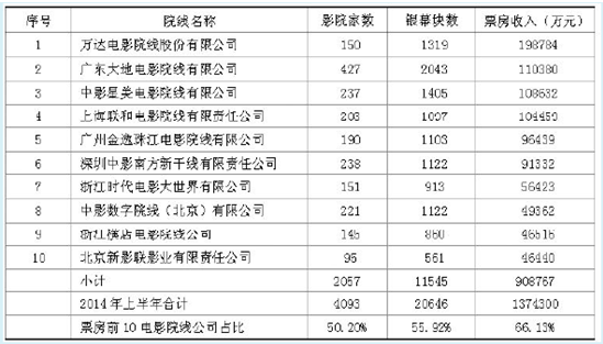 在美國,電影放映環節由幾條大院線控制,在全美近四萬塊銀幕中,大院線控制著大約45%的銀幕,賺取了約80%的票房收入。而國內現有院線近40條,規模最大的萬達院線銀幕數占比不及全國的10%。這一現狀與全國每天近12塊銀幕的建設速度有關,大院線的份額在不斷地被稀釋;也與部分地方政府的地方保護政策有關,把有實力的院線拒之門外。但2013年的數據已經能明顯地反映出觀影人數增長已經跟不上影院建設的步伐,再加上前幾年不理性的跑馬圈地,高額的房租讓大量新建影院處于無法擺脫虧損的現狀之中。這一情況繼續持續下去,必將有一些院線堅持不下去,進而被有實力的院線兼并或重組。除此之外,還有一種可能性,由于影院加盟院線的合同一般都是三年一簽,未來不排除有加盟型院線由于影院退出而發生解體,若真發生,院線排名也將發生新的變化。