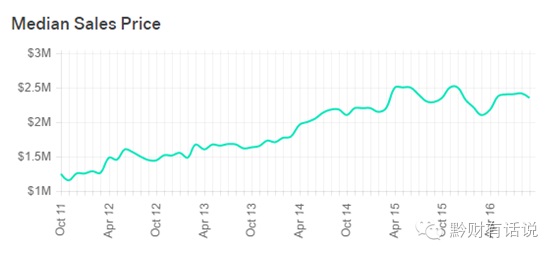 下圖為帕羅奧托過(guò)去5年中位數(shù)價(jià)格的變化圖,可以看到,從11-16年,這一地區(qū)房?jī)r(jià)實(shí)現(xiàn)了翻番。