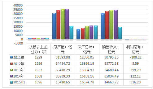 2011-2015年中國化學原料和化學制品制造業經營數據