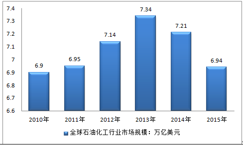 2010-2015年全球石油化工產業市場規模:萬億美元