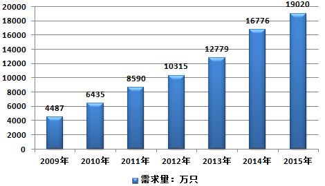 2009-2015年中國(guó)壓力傳感器行業(yè)需求情況