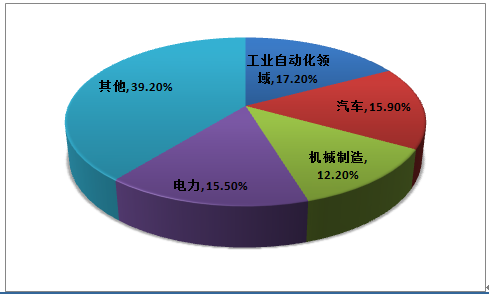 2015年我國(guó)壓力傳感器行業(yè)下游需求領(lǐng)域主要分布在工業(yè)自動(dòng)化領(lǐng)域、汽車、電力等領(lǐng)域,消費(fèi)結(jié)構(gòu)如下圖所示: