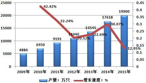 2009-2015年壓力傳感器行業(yè)產(chǎn)量及其增長(zhǎng)速度