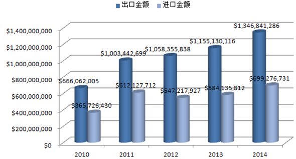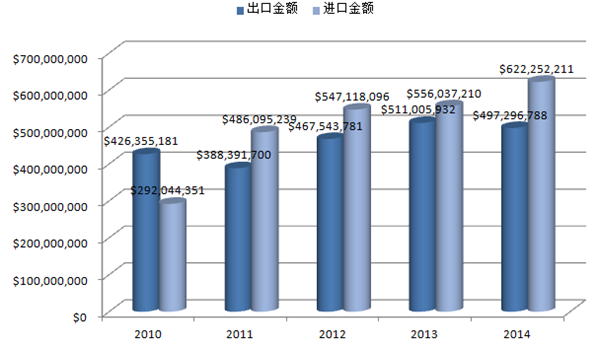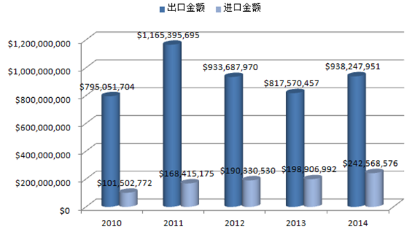 2010-2014年美國機床行業(yè)進出口統(tǒng)計