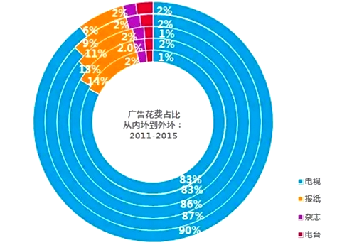 2011-2015年各媒體類型廣告花費占比