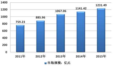 2011-2015年中國糖果產品市場發展(單位:億元)