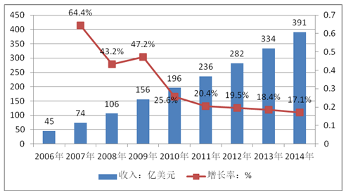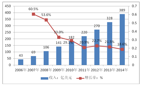 核心提示:高速無線網絡廣泛應用,為市場爆發提供順暢通道。近年來,美國的3G網絡滲透率從30%上升到64%。4G網絡在2010年10月首次部署后,截至2013年9月,其滲透率也已達到19%。這直接助推了移動運營商無線數據業務收入持續增長。從美國前兩大運高速無線網絡廣泛應用,為市場爆發提供順暢通道。近年來,美國的3G網絡滲透率從30%上升到64%。4G網絡在2010年10月首次部署后,截至2013年9月,其滲透率也已達到19%。這直接助推了移動運營商無線數據業務收入持續增長。從美國前兩大運營商來看:Verizon從106億美元增長到391億美元,復合增長率達27.7%;ATT從106億美元增長到389億美元,復合增長率達26.3%。高速無線網絡的廣泛應用突破了移動應用的速率瓶頸,大幅提升了移動應用的用戶體驗,促使更多創新型應用蓬勃誕生,為市場爆發提供了順暢的信息通道。
