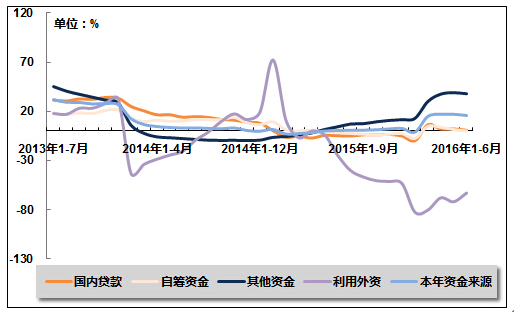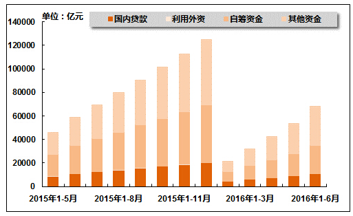 2015年5月-2016年6月累計全國房地產開發企業資金來源構成情況