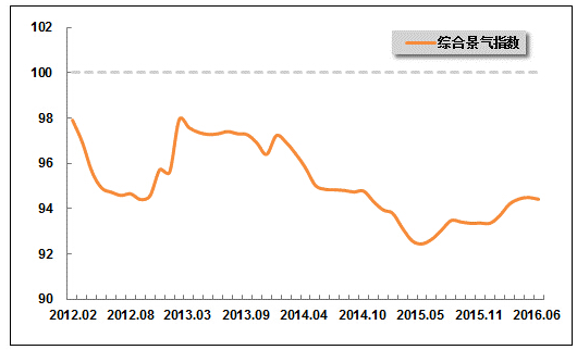 2012年2月-2016年6月“國房景氣指數”變動趨勢