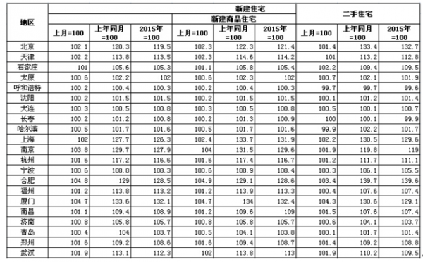 注:本表所列北京市“新建商品住宅價格指數”與北京市有關部門發布的“新建普通住房價格”在統計口徑、統計標準等方面均有不同。