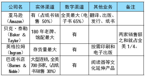 當前美國市場,大眾圖書基本上是紙電同步銷售,各主要發行商大多也兼營實體渠道和數字渠道。
