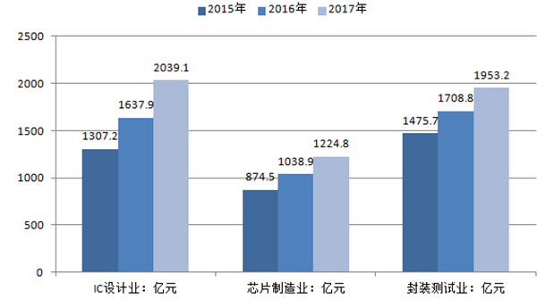 2015-2017 年中國集成電路產(chǎn)業(yè)各產(chǎn)業(yè)鏈銷售收入