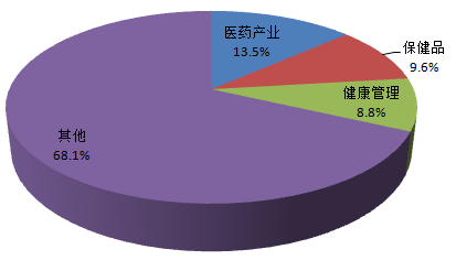 據測算:2015年美國醫藥產業規模約為4030億美元,占比為12.5%;保健品產業規模為2866億美元,占比為9.6%。