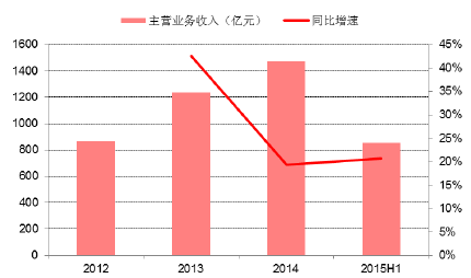 2012-2015年我國(guó)保健食品企業(yè)主營(yíng)業(yè)務(wù)收入