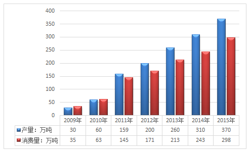 中經先略數據中心發布的《2016-2022年中國水溶性肥料市場運營態勢與投資前景分析報告》顯示,在生產方面2015年我國水溶性肥料產量為370萬噸,產量較2014年同期增長19.4%,國內市場水溶性肥料需求量為298萬噸,需求同比增長22.6%。