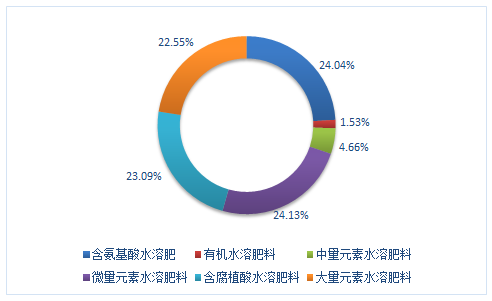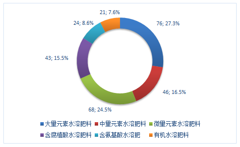據統計,我國含氨基酸水溶肥登記數為1807種,占水溶性肥料總數的24.04%;有機水溶肥料登記數為115種,占水溶性肥料總數的1.53%;中量元素水溶肥料登記數為350種,占水溶性肥料總數的4.66%;微量元素水溶肥料登記數為1814種,占水溶性肥料總數的24.13%;含腐植酸水溶肥料登記數為1736種,占水溶性肥料總數的23.09%;大量元素水溶肥料登記數為1695種,占水溶性肥料總數的22.55%。
