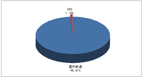 2014我國汽車行業(yè)總銷量為2349.19萬輛,同比增長6.9%。當(dāng)中2014年國內(nèi)制造汽車銷售量為2320.83萬輛,CKD汽車銷量為28.36萬輛。