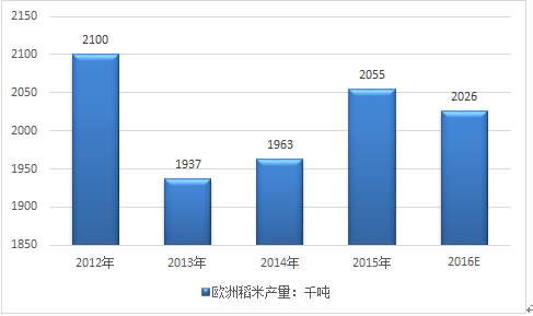 2012-2016年歐洲稻米產量走勢圖