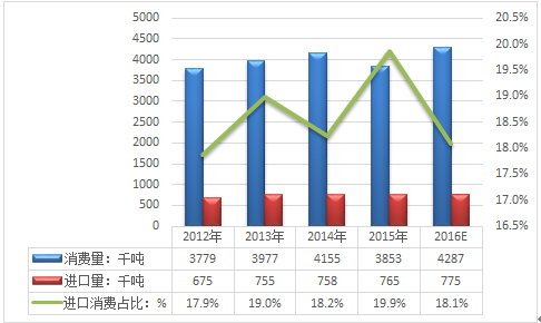 -2012年2013年2014年2015年2016E產量:千噸63486117710661077335消費量:千噸37793977415538534287出口量:千噸32952998347233503600進口量:千噸675755758765775庫存量:千噸11561025155213611599資料來源:公開資料整理