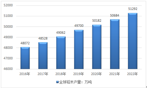 2016-2022年全球稻米產(chǎn)量預(yù)測(cè)圖