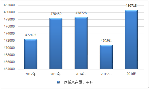 2012-2016年全球稻米產(chǎn)量走勢(shì)圖