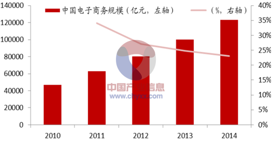 2010-2014年中國電子商務規模及增長率