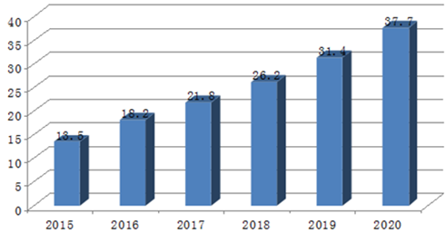 根據當前我國宏觀經濟的發展趨勢,網購人數的迅速擴大,信息產業的快速發展,結合我國電子商務交易額的歷史發展規律,預計未來五年我國電子商務的交易額增速在20%左右,到2020年我國電子商務交易額將達到37.7萬億元。