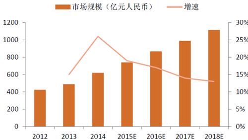 近年來,隨著平安城市項目以及公安部信息化程度的快速推進,我國城市視頻監控市場保持高增長的態勢。2015 年我國視頻監控硬件市場規模預計為740 億元,市場增速在19%,未來預期增速仍將保持在10%以上。