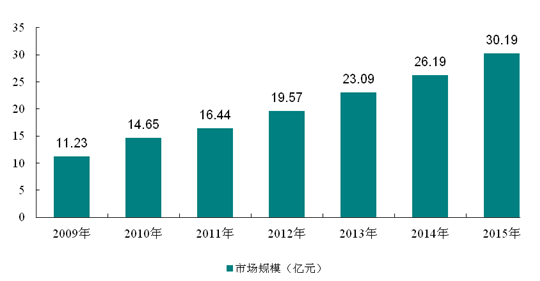 2015年我國助聽器銷售量達到626.9萬個,行業(yè)產(chǎn)品平均價格約480元/個,助聽器行業(yè)銷售市場規(guī)模約30.19億元。近幾年我國助聽器行業(yè)銷售市場規(guī)模如下圖所示: