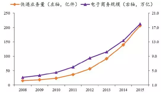快遞業務量與電商規模增長曲線基本一致