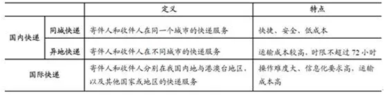 2、國內的快遞產品主要按地域范圍劃分,分為同城快遞、國內異地快遞和國際(含港澳臺)快遞三類。