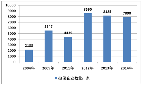 2004-2014年中國擔(dān)保業(yè)機構(gòu)數(shù)量