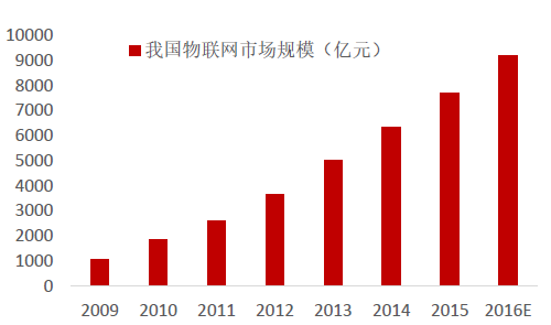 2015 年我國物聯網市場規模達到7500 億,同比增長21%;2015 年我國M2M 連接數突破7400 萬,占全球23%,高居第一位;RFID 產業規模超過300 億元,傳感器市場規模超過1000 億元。預計未來幾年,我國物聯網行業年均增速將達到30%左右,2018年物聯網行業市場規模有望超過1.5 萬億元,行業空間巨大。