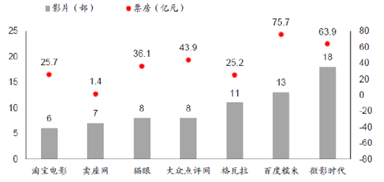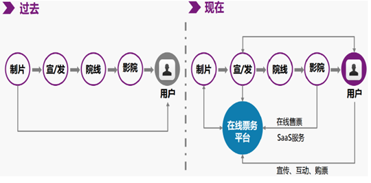 在線票務平臺通過在上游為制片方、下游為影院提供各種服務,已經成為電影宣傳、發行及售票的最大入口,從而在產業上下游擁有話語權。互聯網發行渠道的崛起和集中度的提升,進一步倒逼院線行業推進整合,提升集中度,加大對發行方的議價能力。同時, 制片方、院線都與在線票務平臺密切合作,通常會通過聯合出品、聯合發行等方式進行, 對三方而言實現共贏,也給院線公司帶來新的盈利模式。
