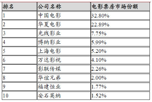 電影投資制作機構出品影片數量票房過億影片數量過億影片市場份額(%)電影頻道5421.89%合一影業有限公司28910.08%中國電影集團公司2585.60%上海電影(集團)有限公司2311.69%北京光線影業有限公司22711.24%八一電影制片廠1710.94%萬達影視傳媒有限公司17812.88%華誼兄弟傳媒發行有限責任公司1578.76%華夏電影發行有限責任公司1532.27%博納影業集團1554.83%華策影業(天津)有限公司1531.40%深圳市騰訊視頻文化傳播有限公司13813.84%樂視影業(北京)有限公司1243.97%北京紫禁城影業有限責任公司1022.53%阿里巴巴(杭州)文化創意有限公司963.51%北京攝影時代科技有限公司723.72%北京完美影視傳媒股份有限公司510.64%北京愛奇藝科技有限公司520.93%電影發行市場集中度高,國有企業具備進口發行壟斷優勢,民營企業院線聯盟和發行矩陣模式領先。傳統國有發行公司仍處于強勢地位,中影集團和華夏電影是目前國內獲準從事進口片引進的公司,在當下“一家進口、兩家發行”的進口影片政策下具有發行壟斷優勢,此外上海電影由于區位優勢也具有較好的市場表現。2013-2015年中國電影主導或參與發行國產影片790部,實現票房327.42億元,占同期全國國產影片票房總額的58.41%,主導或參與發行進口影片223部,實現票房228.92億元,占同期全國進口影片票房總額的58.07%;上海電影發行國產電影71部,其中全國獨家發行電影27部,聯合發行電影44部,實現票房收入21.79億元,占同期全國國產影片票房總額的3.89%。傳統民營發行公司中,院線聯盟和發行矩陣模式領先。2012-2015年,五洲、光線、博納、樂視四個行業龍頭的市占率保持提升,其中五洲增長最快一躍成為2015年最大的民營發行公司,而華誼兄弟份額逐年下滑。在主發國產片的發行場次方面,五洲、光線名列前茅。從發行影片的首日場次表現上看,院線聯盟模式的五洲和發行矩陣模式的光線的場次保證能力排在前列。目前國內排名前四的發行企業電影票房市場份額已經達到近70%,集中度很高。