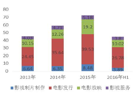中國電影是縱向產業鏈整合的代表。截至2016年上半年,中國電影實現制作業務營業收入3.89億元,參與出品的影視作品包括了《美人魚》、《西游記之孫悟空三打白骨精》、《大唐玄奘》、《魔獸》及《功夫熊貓3》等;電影發行業務實現營業收入26.78億元,公司參與發行了國產電影148部,進口電影40部;電影放映業務實現營業收入10.02億元,公司共擁有3條控股院線、4條參股院線,102家控股影院和13家參股影院。