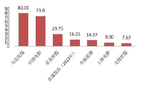 再對比中美兩國電影制作發行市場的格局,美國的電影制作發行龍頭企業實力更為均衡,2014年六大發行公司份額均超過10%,對比國內則發現中影、華夏電影憑借進口發行壟斷優勢份額遙遙領先于市場其他企業,前四大發行公司集中度高達70%。上游發行方集中度較高,相對強勢,對下游院線形成一定壓力。院線只有形成一定規模,才能獲得對上游發行方較大的議價權。隨著萬達院線、上海電影、中國電影、幸福藍海等公司紛紛上市,未來借助資本市場平臺,實現優質影片、人才等資源向其傾斜,進一步實現兩級分化。