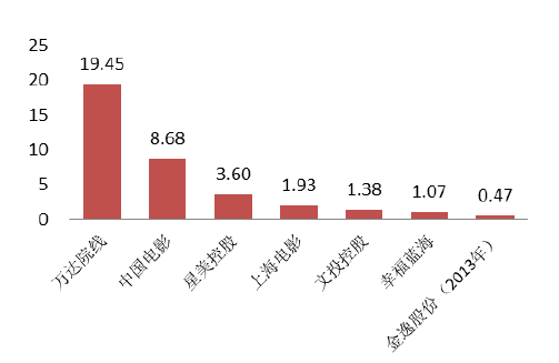從上市公司收入和凈利體量來看,萬達院線和中國電影屬于第一梯隊,且相比于后幾名規模優勢遙遙領先。隨之排位的是星美控股(港股)、金逸股份、幸福藍海和上海電影,屬于第二梯隊。基于院線業務擴張彈性,后續具備產業鏈整合的可能性,我們看好上海電影上市后的持續布局和盈利能力提升,市值成長空間較大;而基于院線行業格局有望呈現集中度提升的趨勢,我們看好全國性龍頭萬達院線、中國電影將強者恒強,持續擴張;區域性龍頭幸福藍海后續異地擴張和自身電影產業鏈整合也值得期待。