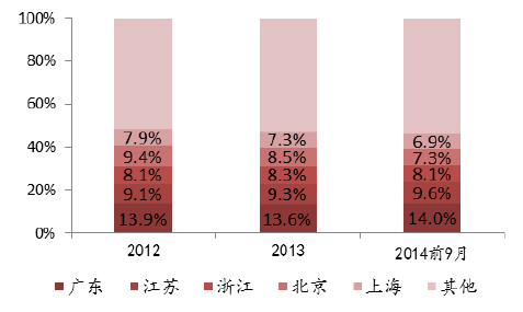 院線的區域化頭部特征明顯,上海電影、幸福藍海等立足經濟發達地區,發展良好。廣東、江蘇、浙江、北京、上海等五大地區合計票房份額則接近46%,并處于相對穩定狀態,人民觀影次數都顯著高于全國平均次數。一線城市:上海電影票房收入長期占據上海近30%或以上的市場份額,形成突出的區位經營優勢,旗下聯和院線2013年票房為18.8億元,位列城市院線第二名;2014年及2015年,聯和院線的票房分別為22.7億元及31.5億元,均位列城市院線第四名。二、三線城市:2013-2015 年,在我國票房收入排名前10位的地區中,以江蘇、浙江為代表的經濟發達地區票房增速高于北京、上海等成熟市場的票房增速,顯示出隨著主力院線從一線城市向基本完成城市化的區域沉降,經濟發達地區二、三線城市的電影消費需求開始發力,區域院線也隨之迎來發展機遇。2013-2015年,江蘇的票房收入排名繼續保持全國第二,幸福藍海實施“立足江蘇、深耕華東、面向全國”的發展戰略,影院整體票房收入從2013年的第16名提升至2015年的第10名。