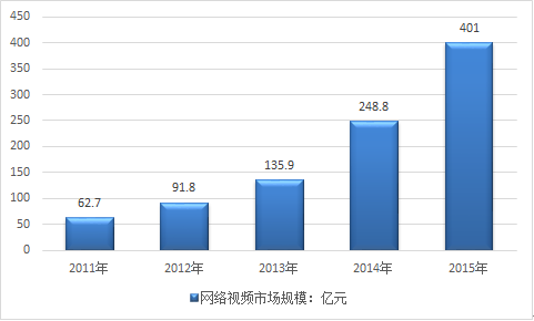 我國網絡視頻行業規模2015 年超過400 億元,同比增長>60%,ARPU 值明顯提升。